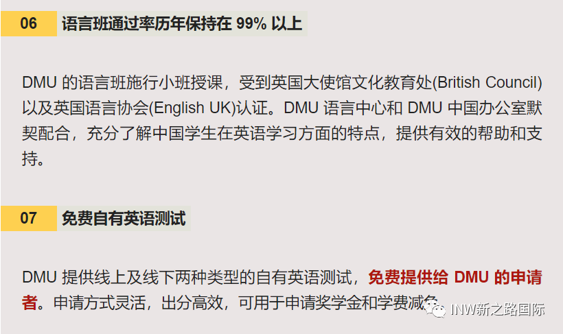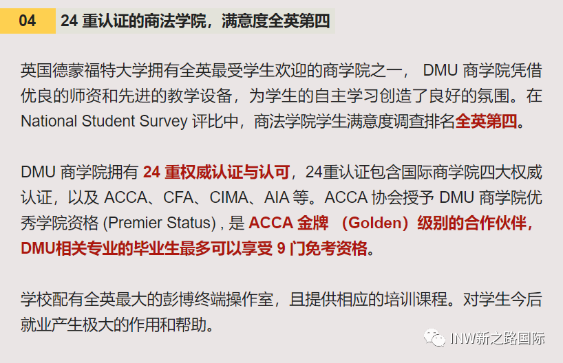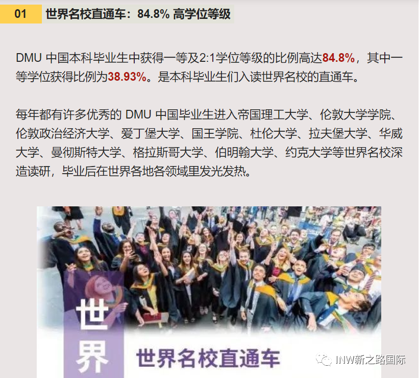 (图片来源:校方官网) ![]() 中国教育部留学服务中心开始为该校2010年5月以后在EAIM毕业并颁发的所有文凭提供认证服务。也就意味着,在EAIM留学获得的学位证书都是受到中国教育部认可的! 考研党失利怕什么?换个赛道,风景更加美丽!时间成本更低! 德蒙福特大学全球MBA 【硕士学位课程】 授课语言:英文授课 学制:12个月(全日制) 入学时间:1月/5月/8月/10月 入学要求: A1、在申请时须年满19周岁。 A2、学历要求: ①申请人需已获得本科学历,且最低通过率为2:2,或具有同等的海外学历; ②被认为具有同等地位的专业资格将被单独评估。 A3、语言要求:雅思6.0或同等的英语语言资格。 B、没有本科的申请者:必须年满30周岁且具有8年工作经验,将被单独评估与考虑。 课程介绍: 全球 MBA课程是一项非常有特色的专业MBA,由著名学者和行业专家提供,课程包含7个科目和3个项目管理。 技能和专业知识可为您带来出色的思想和领导才能,以改变您的全球职业生涯。每个科目都为您提供了对国际业务关键方面的高级应用知识,旨在通过实际应用和前沿理论来培养一位完全熟悉全球业务的硕士研究生。 该课程项目专门针对就业能力和增强就业技能,将使您能够更好地表达自己的技能、能力和成就,从而帮助您开发用于将来的简历/简历和工作申请的个人发展投资组合。 更好的消息:初高中毕业生怎么快捷收获DMU学位? 初中毕业生起点直读国际本科4年(新加坡) 高中毕业生起点直接国际本科3年(新加坡) 选择大于努力 信息差决定你的认知范围,认知决定你的选择! 2023年招生计划数:120人 详情请扫码Summer微信 ![]() |
